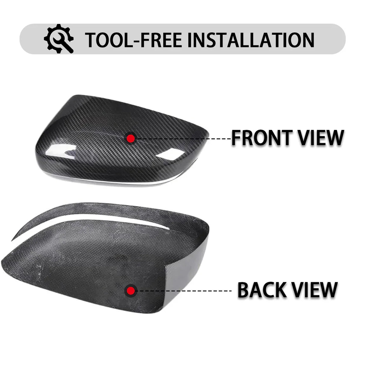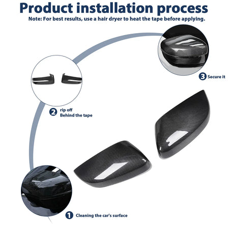 💡 Ideal zum Auffrischen stumpfer Spiegelkappen oder zum Erzielen eines eleganten Carbon-Finishs im M-Stil ohne Modifikationen.