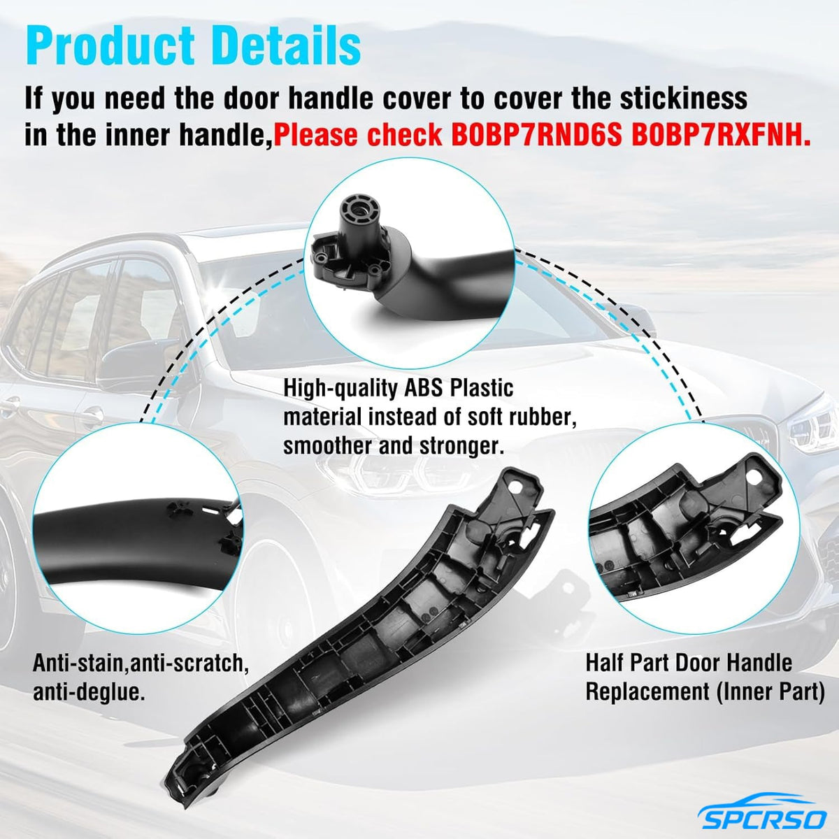 The SPCRSO Door Inner Handle Panel Trim with Matching Outer Frame is a professional-grade replacement solution designed for BMW X3 G01 and X4 G02 models. This upgraded handle kit directly solves the common sticky, melted, or soft-touch door handle issue found on original BMW interiors.