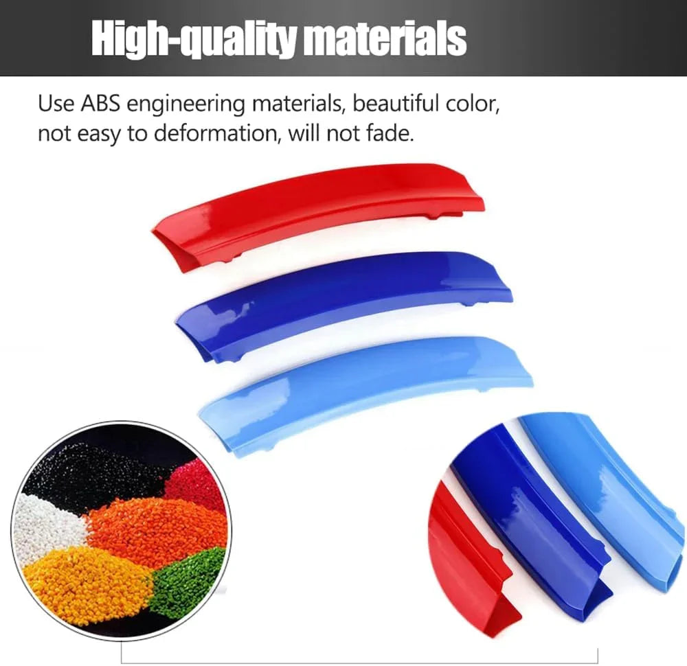 • Perfekte Passform: Diese M-farbigen Kühlergrill-Einsatzblenden passen auf den Kühlergrill auf der Fahrerseite, wobei die Farbsequenz beim 2. (rot), 3. (dunkelblau) und 4. (hellblau) Balken von der rechten Seite beginnt.