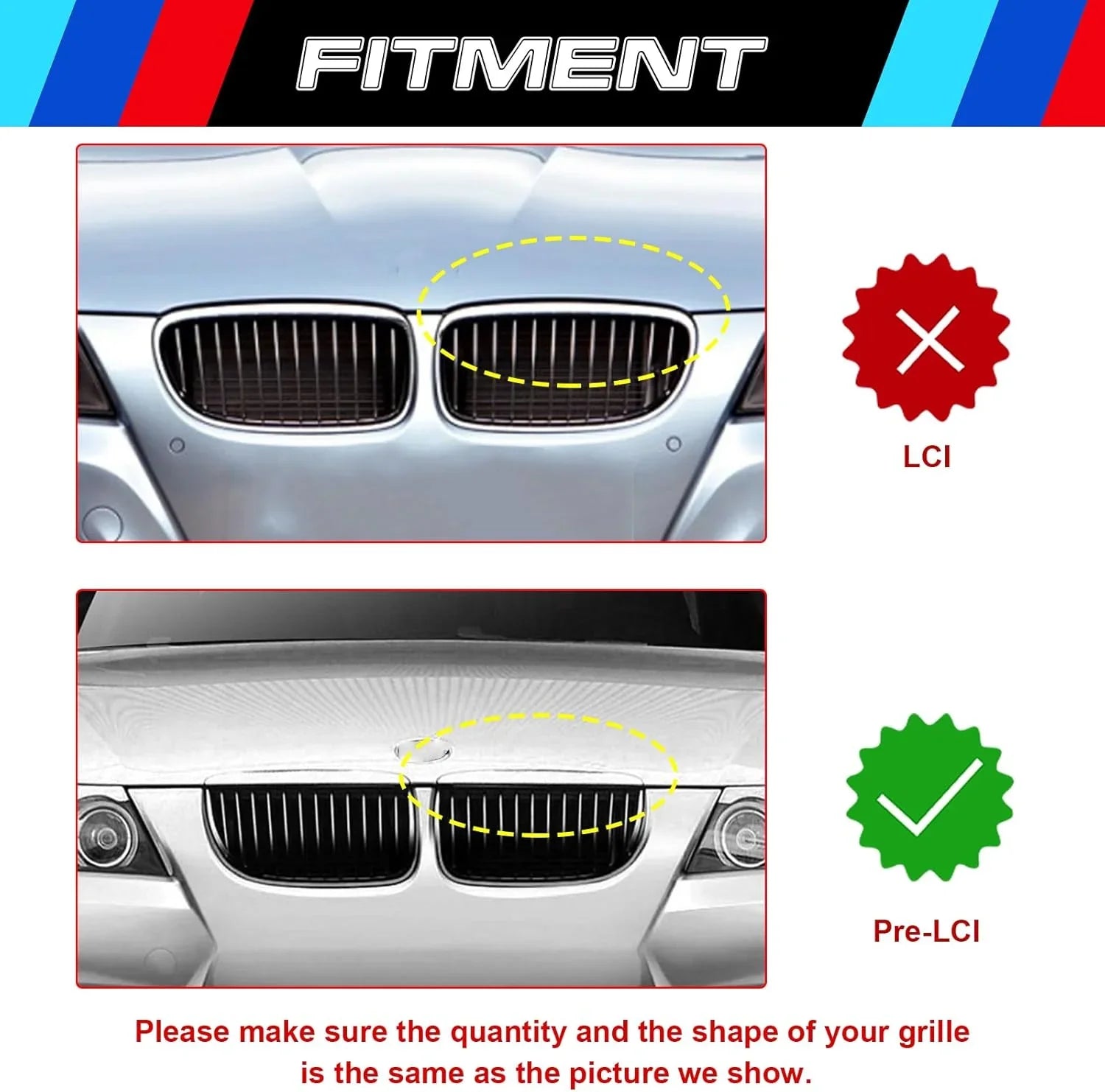 Kompatibel mit BMW 3er-Modellen E90 und E91 vor LCI (2006–2008) mit 12-Balken-Kühlergrill. Beinhaltet 325i, 328i, 330i, 335i und M3. (Nicht kompatibel mit LCI-Modellen). Bitte vergewissern Sie sich vor dem Kauf, dass Ihr Fahrzeug über den 12-Strahl-Kühlergrill verfügt.