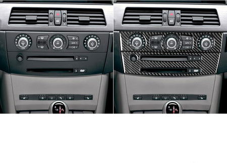 Upgrade your BMW 5 Series E60 (2004–2010) with the SPCRSO Real Carbon Fiber Center Console Air Condition Control & CD Player Panel Trim. This premium interior accessory enhances your car’s cabin with a sporty, high-end finish while protecting your original dashboard from scratches and dust.