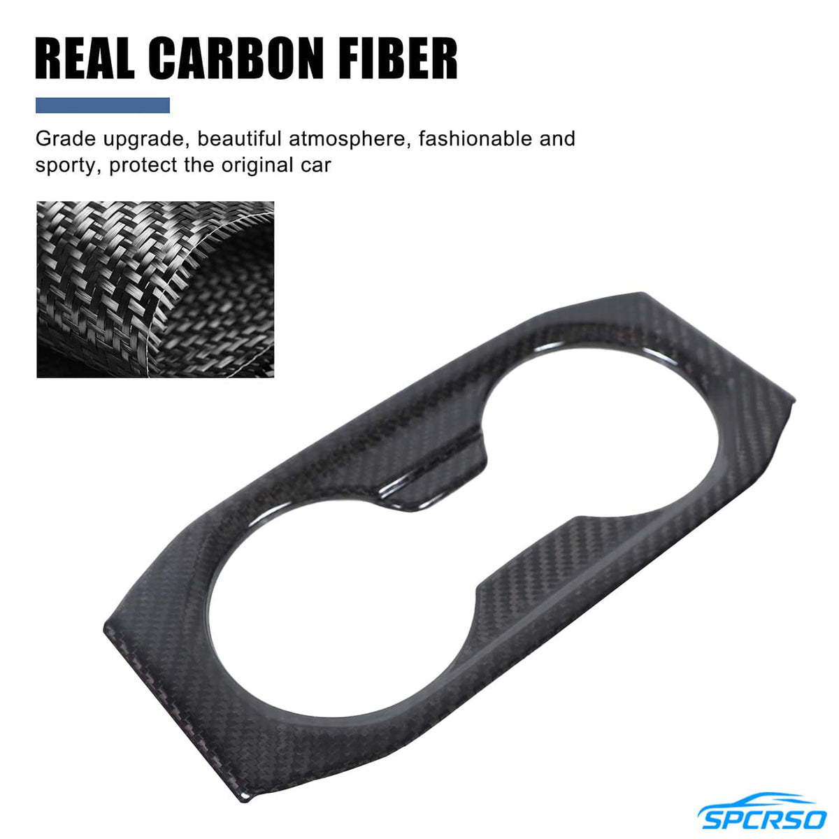 Q1: Is the rear cup holder trim made from real carbon fiber?
