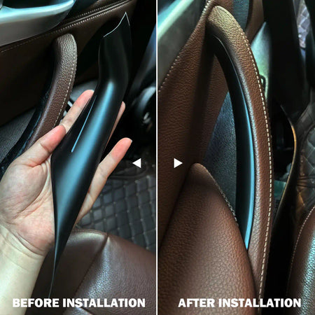 Precision-fit interior door handle covers for BMW X5 (E70) and X6 (E71/E72). This 3-piece set refreshes the interior by covering aging or sticky handles. Crafted from durable ABS+PC for an OEM-like fit. 3-Second Clean · Perfect Fit · Zero Damage.