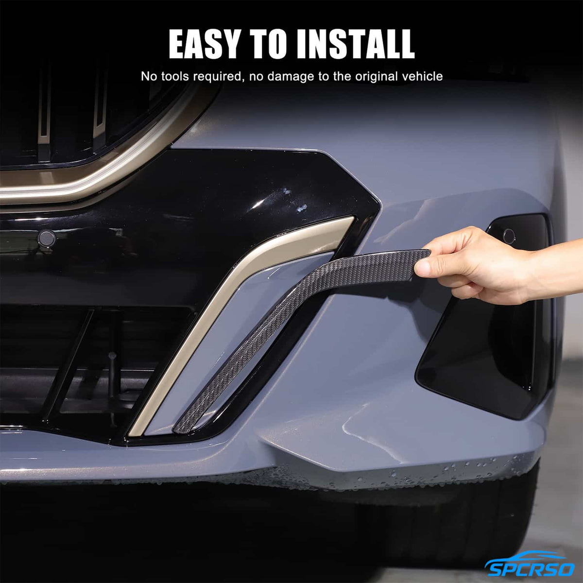 The SPCRSO Real Carbon Fiber Front Bumper Lip Molding Cover is a premium, exterior upgrade designed specifically for the BMW 5 Series G60 (2024 and newer models). Crafted from 100% genuine dry carbon fiber, this bumper lip molding cover enhances your vehicle's sporty aesthetic while providing essential protection.