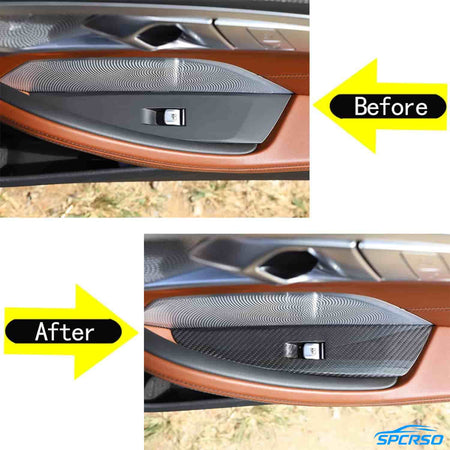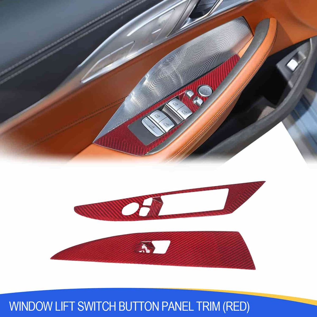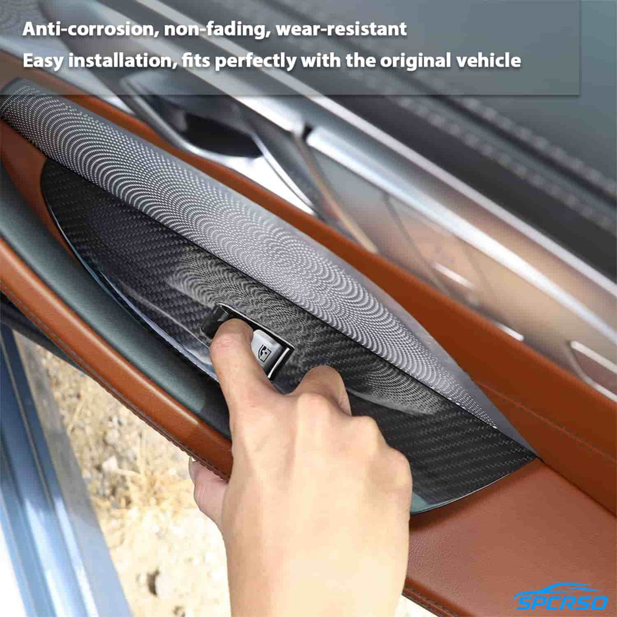 SPCRSO Real Carbon Fiber Window Lift Switch Button Panel Trim for BMW 8 Series G14/G15 2019-2023 – 2PCS