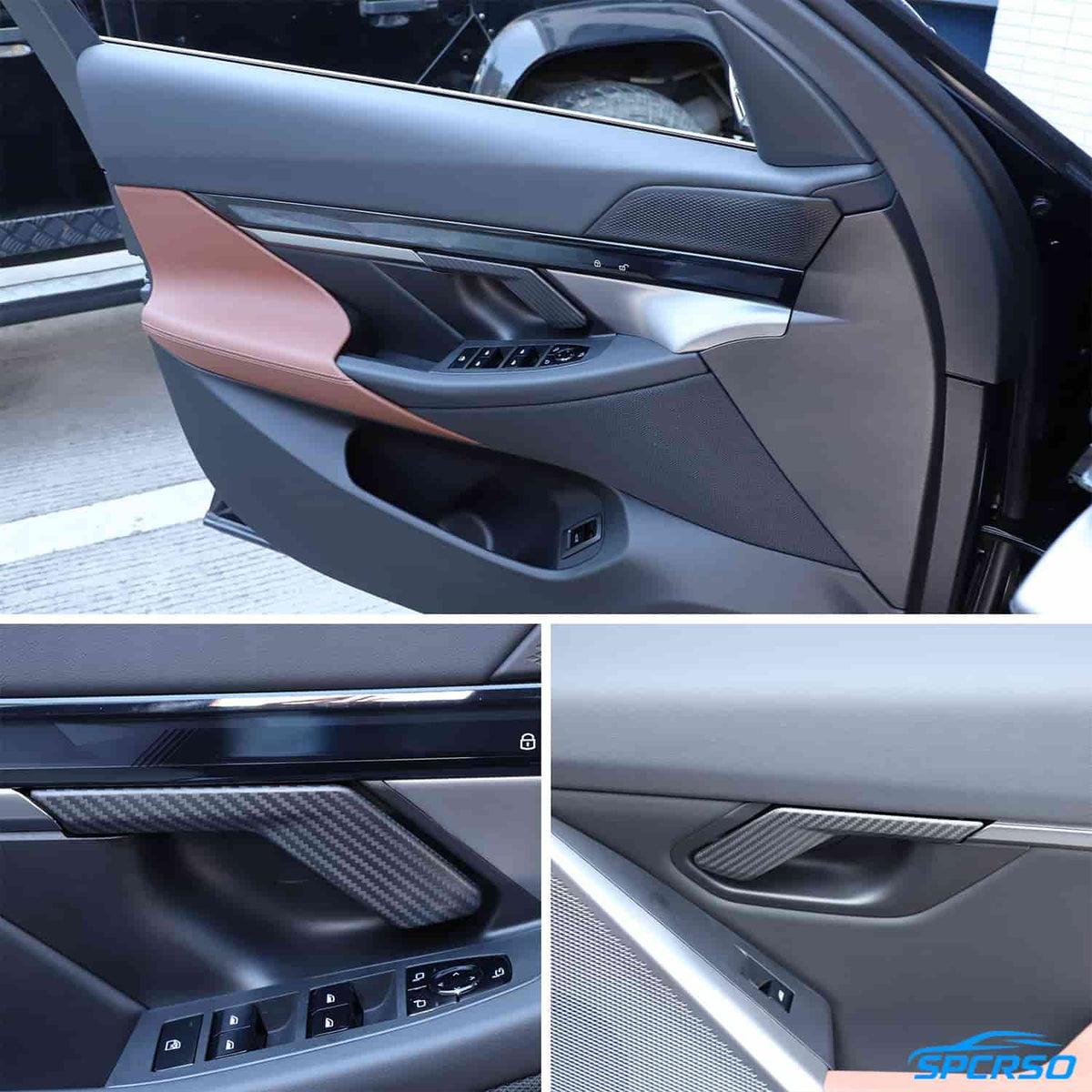 The SPCRSO Real Carbon Fiber Interior Trim is specifically designed for the 2024 and newer BMW 5 Series G60. Made from 100% real carbon fiber, this trim adds a sleek, sporty look to your car's interior while offering superior durability. It’s perfect for enhancing your vehicle’s aesthetic and protecting original components from scratches and wear. The trim features self-adhesive tape for easy, tool-free installation, ensuring a hassle-free upgrade to your BMW's interior.