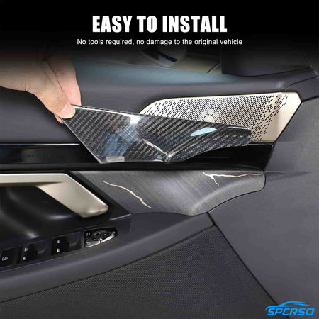 Enhance your BMW 5 Series G60 (2024+) with the SPCRSO Real Carbon Fiber Door Handle Trim Covers. These premium trims are crafted from 100% genuine carbon fiber, offering a sleek, sporty, and luxurious finish to your car’s interior. Designed to fit perfectly, this high-quality trim not only upgrades your car’s aesthetic but also protects your door handle panels from scratches, dust, and daily wear.