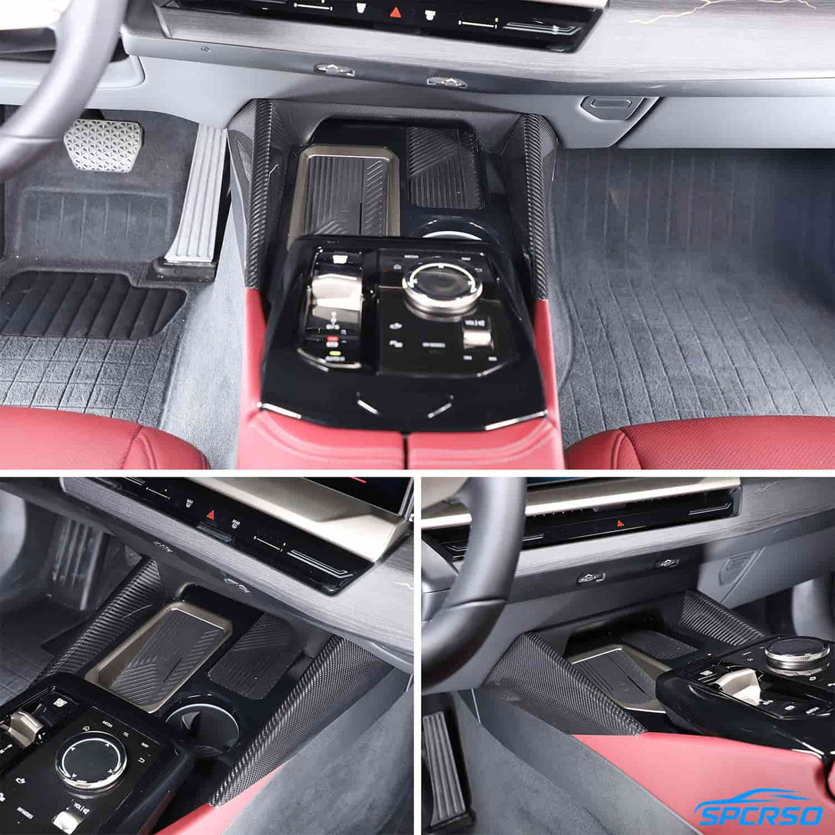 The SPCRSO Real Carbon Fiber Gear Shift Panel Trim is a premium accessory designed to upgrade your BMW 5 Series G60 (2024 and newer). Made from 100% genuine carbon fiber, this trim enhances the sporty and luxurious appeal of your vehicle’s interior. It not only gives your center console a sleek appearance but also provides protection for the gear shift panel against daily wear, scratches, and fading.