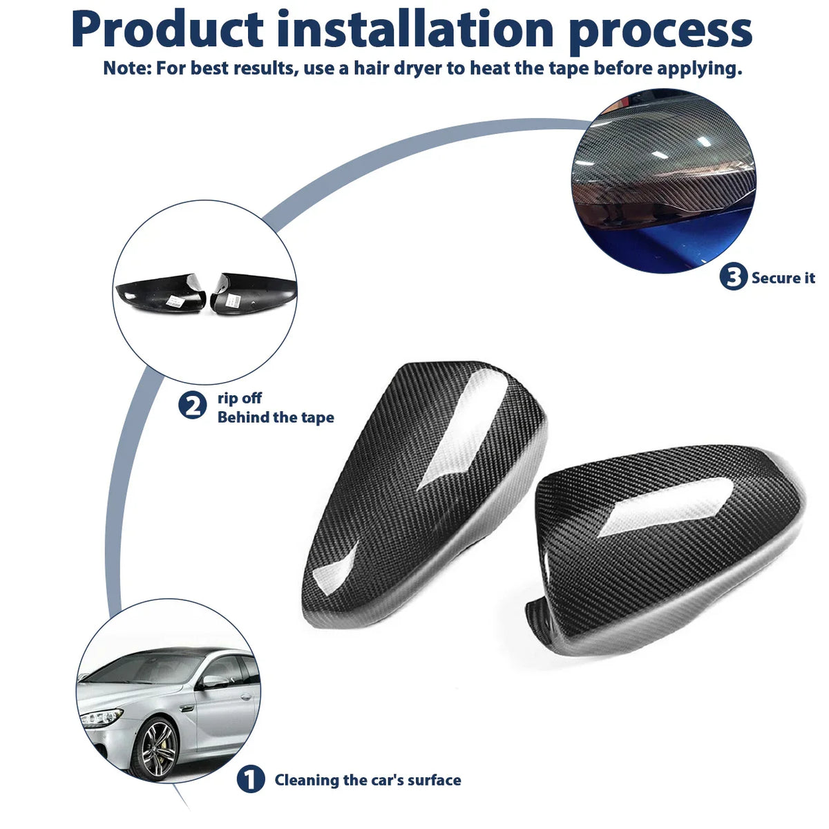 1. Clean and dry OEM mirror caps (remove wax/grease with alcohol).