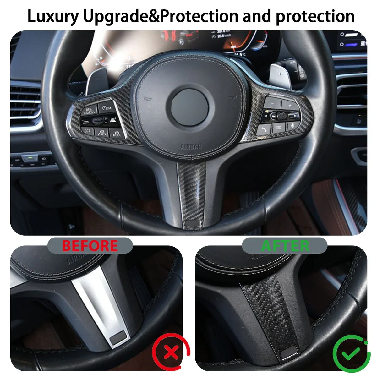 • 2 × Carbon Fiber Steering Wheel Button Frame Covers (Left & Right)
