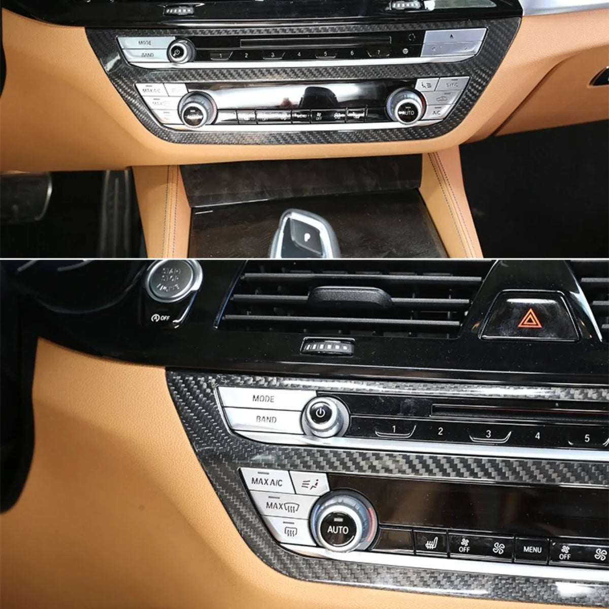 SPCRSO Real Carbon Fiber Center Console CD & AC Panel Trim for BMW 5 Series G30 2018–2022 (LHD)