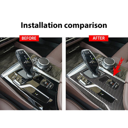 Upgrade the interior of your BMW 5 Series with this Forged / Real Carbon Fiber Center Console Gear Shift Panel Trim, designed for BMW G30 2017–2023 (LHD). This premium trim enhances your cabin with a sporty, luxurious look while protecting the factory panel from scratches, fingerprints, and long-term fading.
