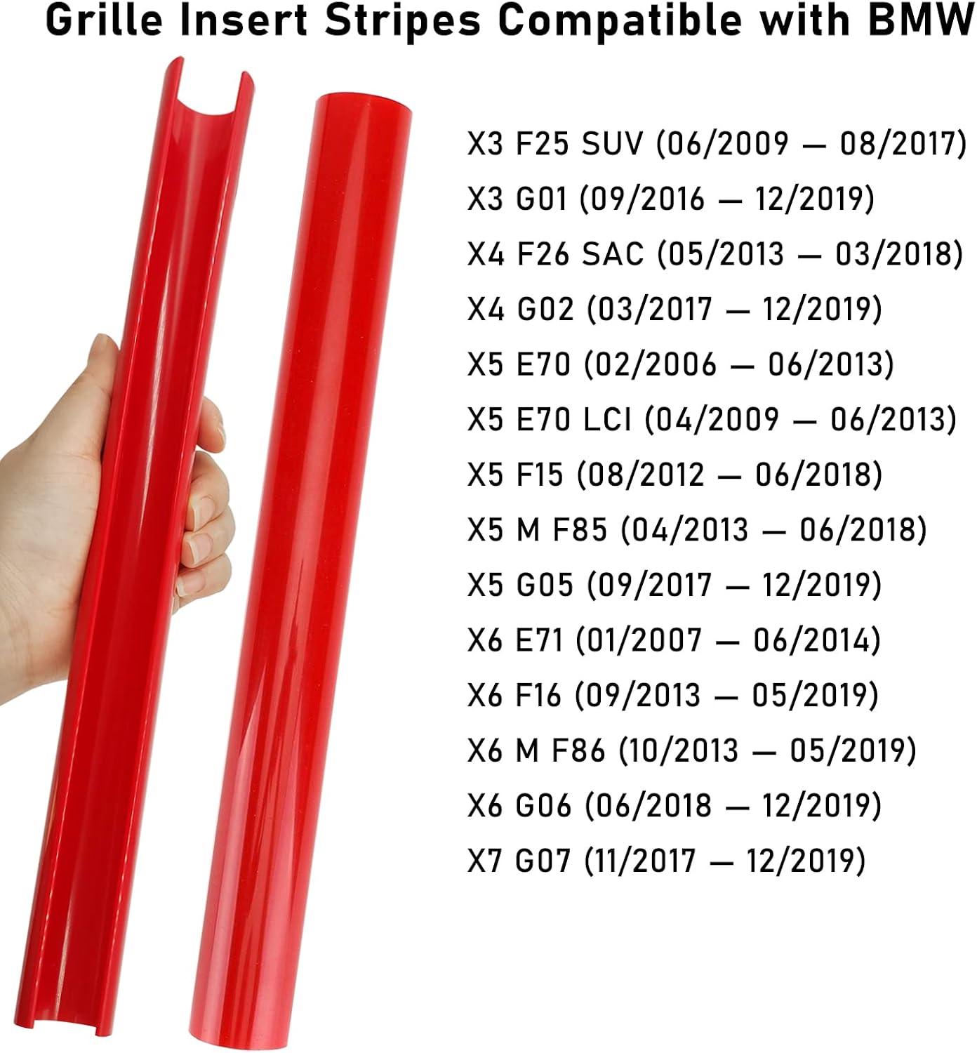 • Housses de protection pour barres de renfort en V : Spécialement conçus pour les BMW X3 F25, G01, X4 F26, G02, X5 E70, F15, G05, X6 E71, F16, G06, X7 G07. Ces caches de calandre avant en V s'adaptent parfaitement à vos calandres. Ils s'enclenchent sur les traverses et ajoutent une touche de couleur élégante.