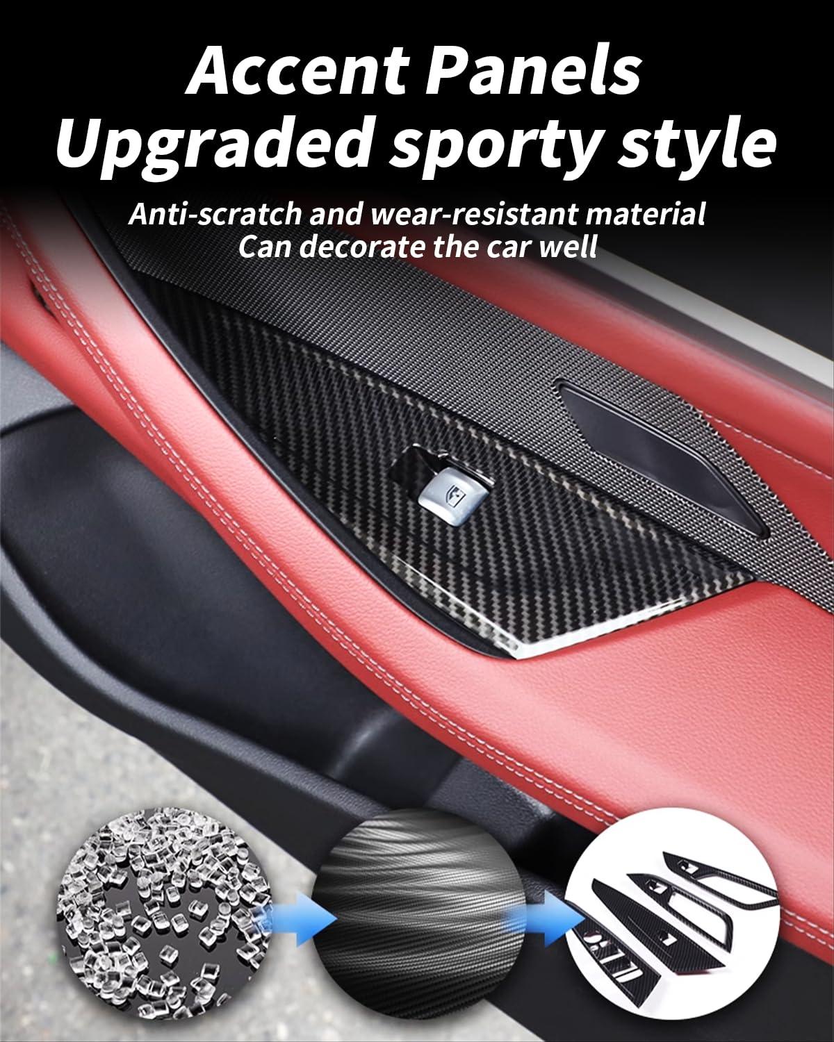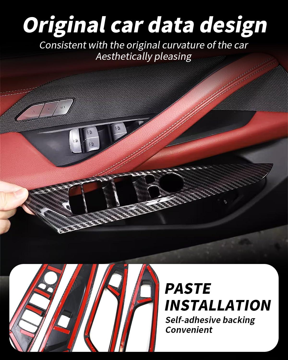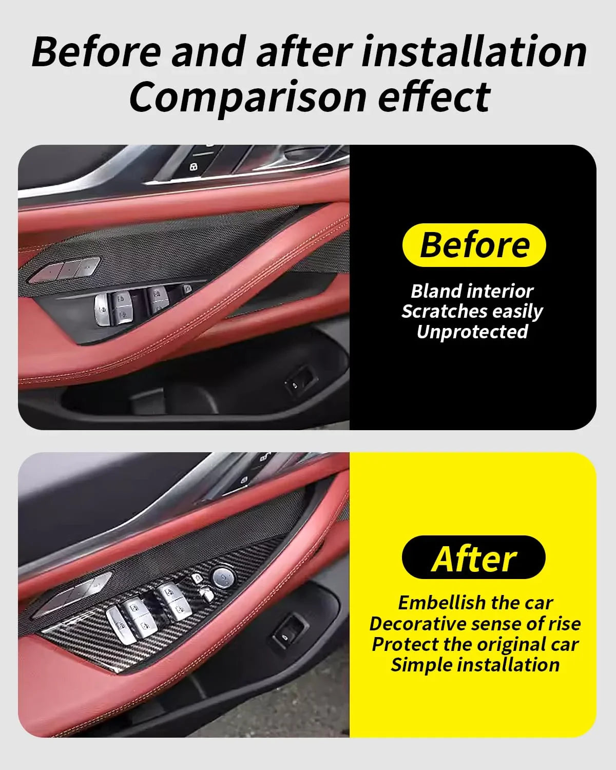 Transform your BMW’s interior with a subtle yet high-impact upgrade. These window switch panel trims add a refined carbon-fiber style finish, covering scratches while enhancing the overall design of your door panels.