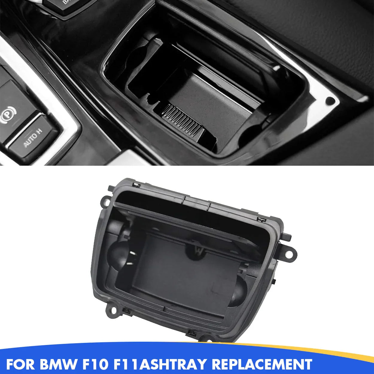 Custom-made Center Console Ashtray for BMW 5 Series F10/F11. Replaces OEM part number 51169206347. (Note: Ashtray insert is not included.)