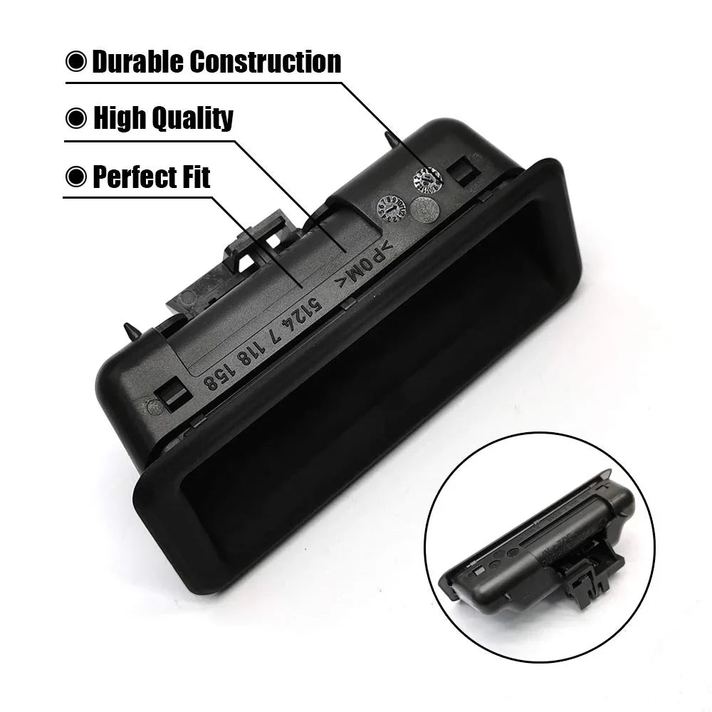 Direct replacement for OEM part numbers: 51247118158, 51-24-7-118-158, 7118158. Package includes: 1 x Trunk Lid Release Push Button/Tailgate Lock Handle Switch.