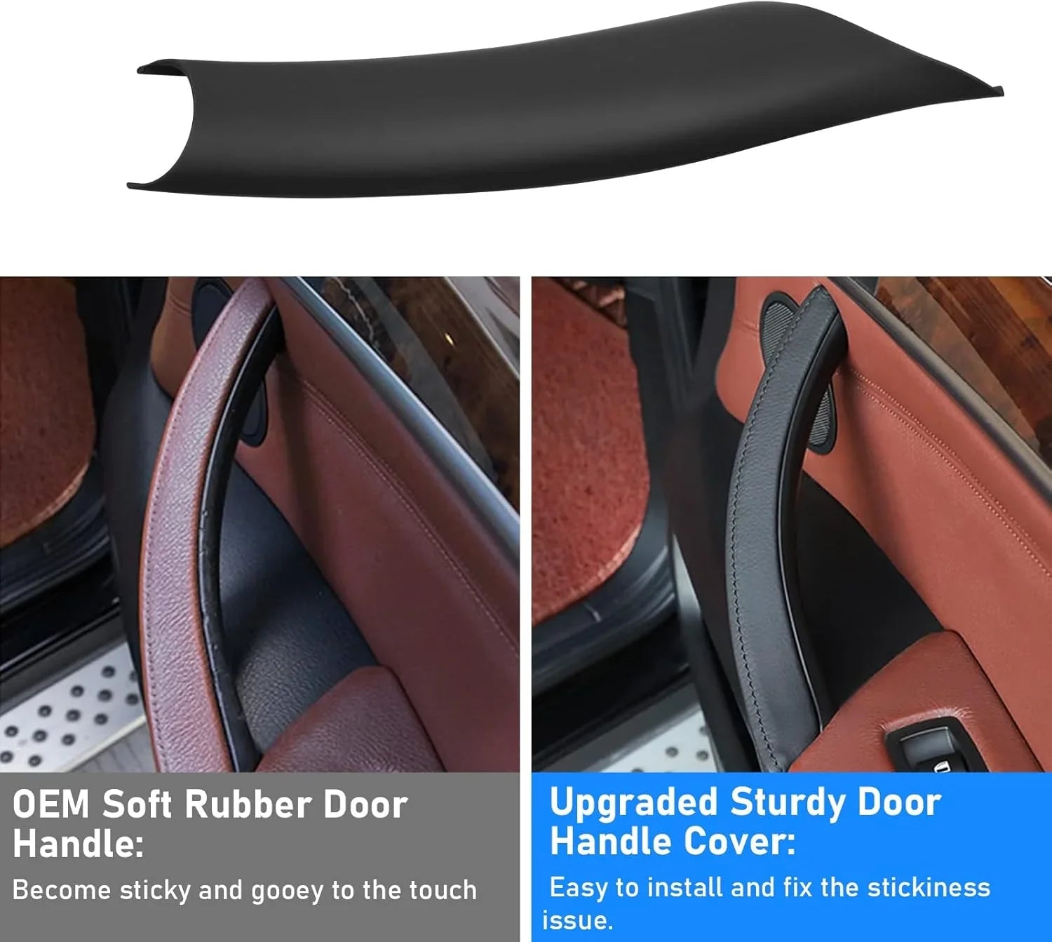Precision-fit interior door handle covers for BMW X5 (E70) and X6 (E71/E72). This 3-piece set refreshes the interior by covering aging or sticky handles. Crafted from durable ABS+PC for an OEM-like fit. 3-Second Clean · Perfect Fit · Zero Damage.