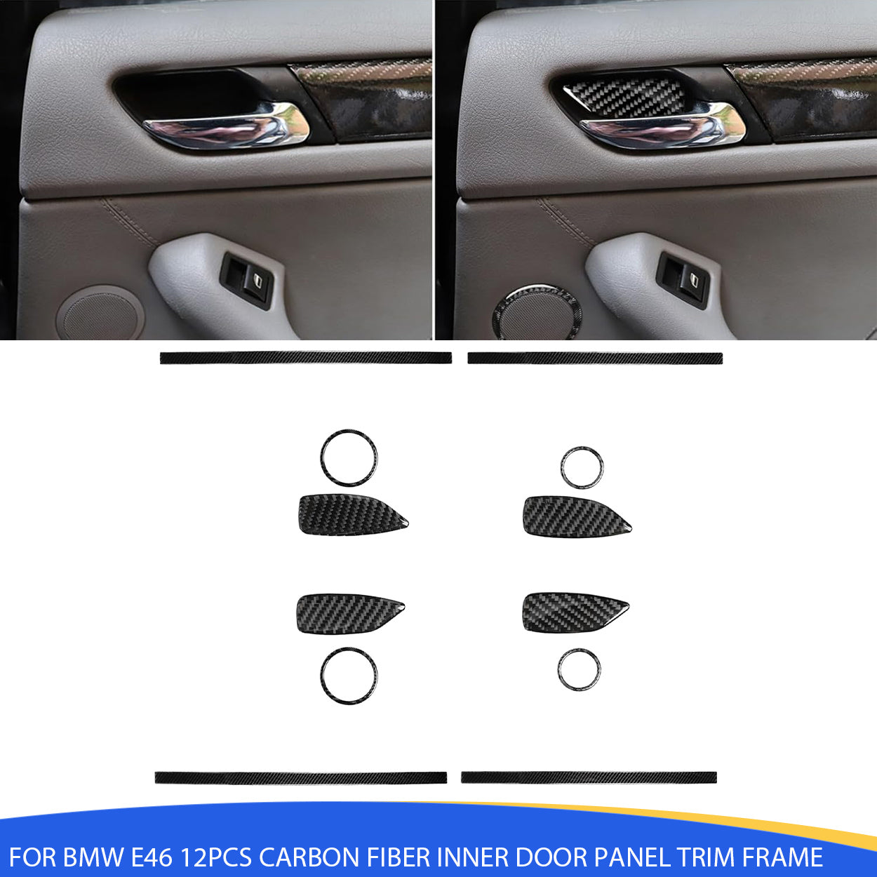 Includes 12 carbon fiber pattern decorative stickers designed for the inner frame areas around the door panels. Ideal for enhancing the appearance of aged or plain interior door trims.