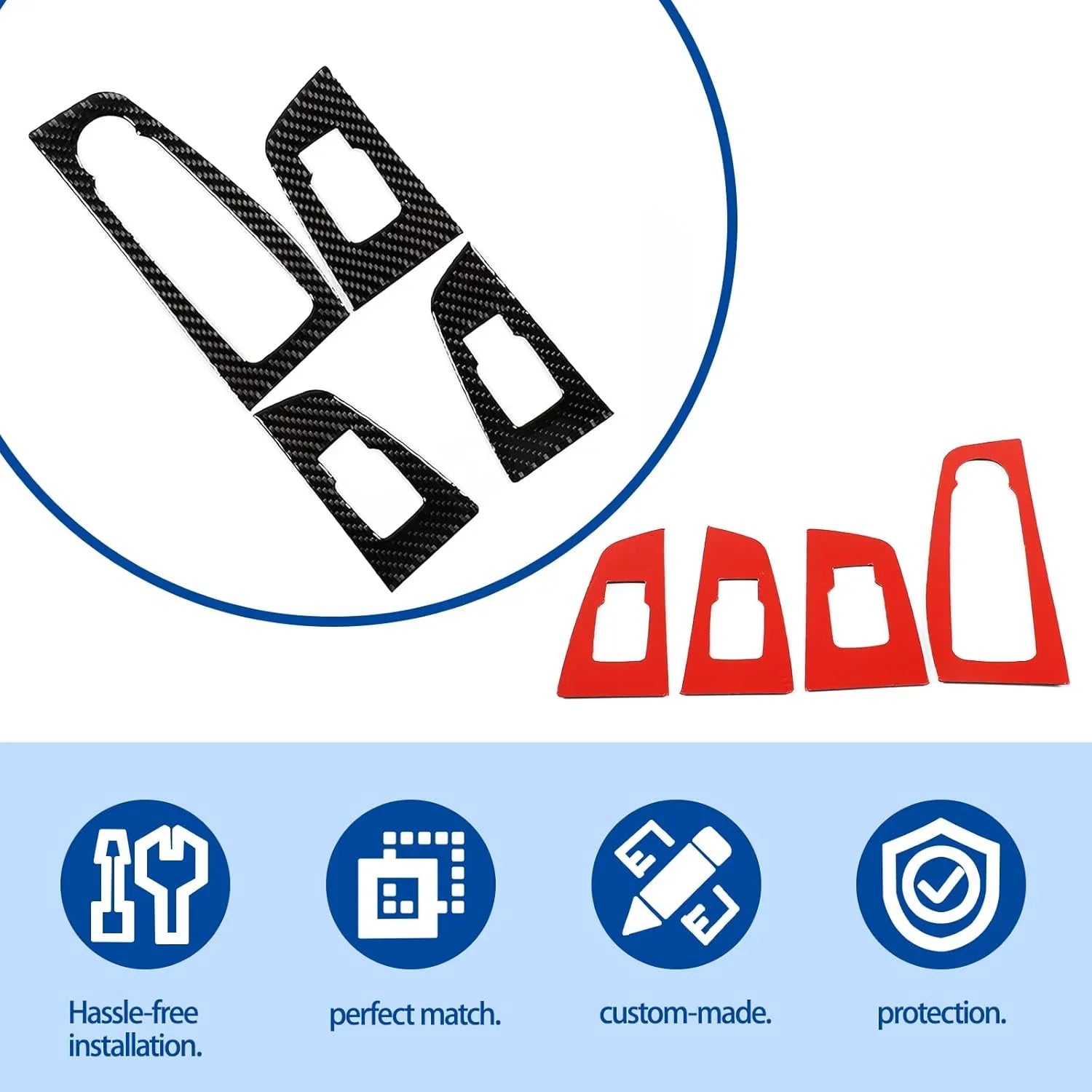 4 x Carbon Fiber Window Lift Switch Panel Trim Covers.