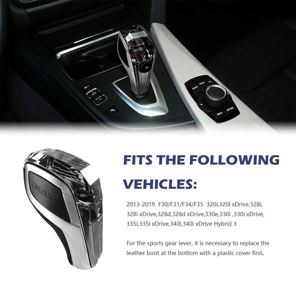 Compatible with BMW 3 Series (F30, F31, F34, F35) 2013-2019 equipped with a plastic cover. If your shift lever has a leather boot, you will need to purchase a plastic cover separately (available via the provided link) for modification before proceeding.