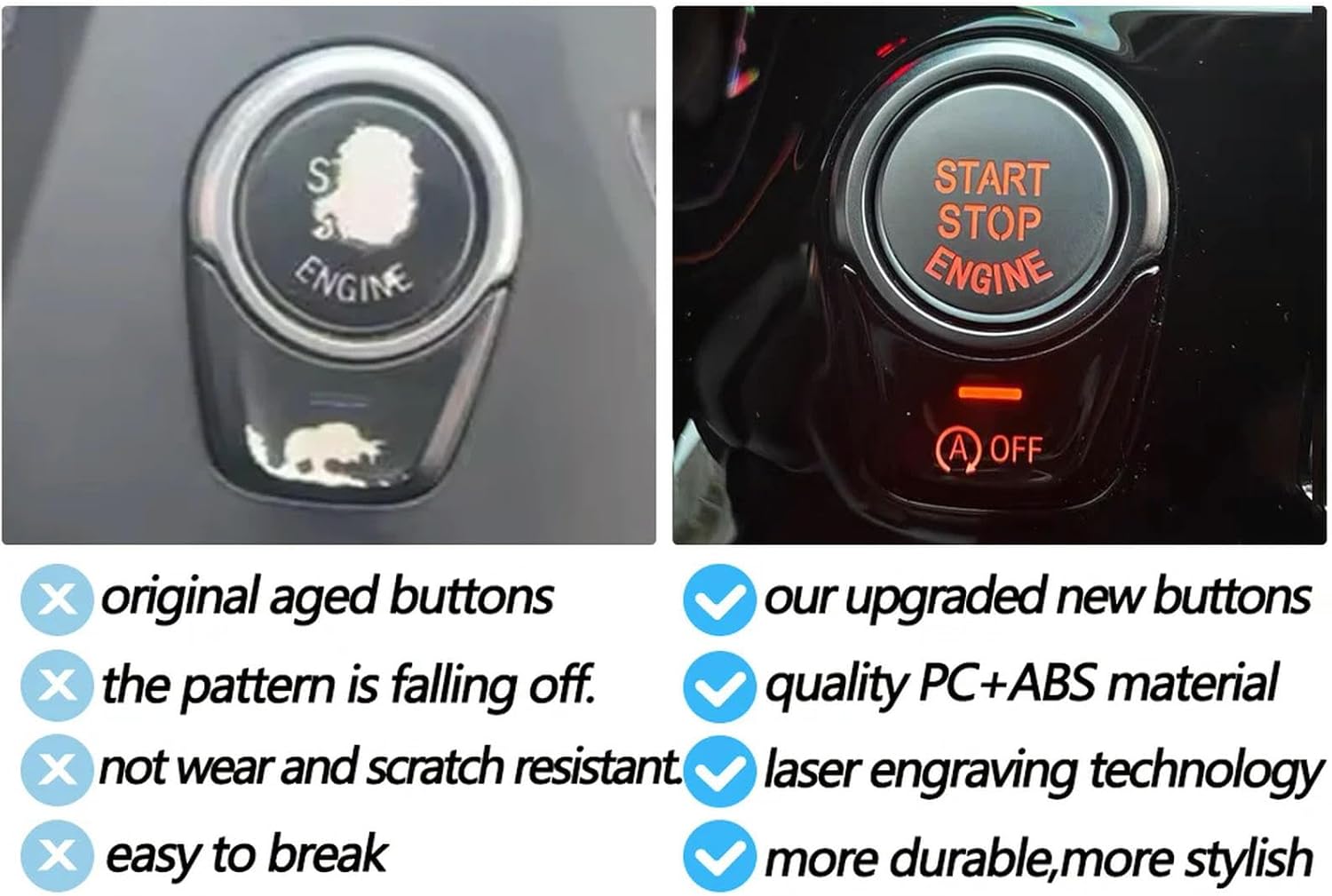 Custom-fit design based on original vehicle specs. Precisely matches factory button dimensions and positioning. Direct replacement for worn, scratched, or broken start/stop buttons—no modification required.