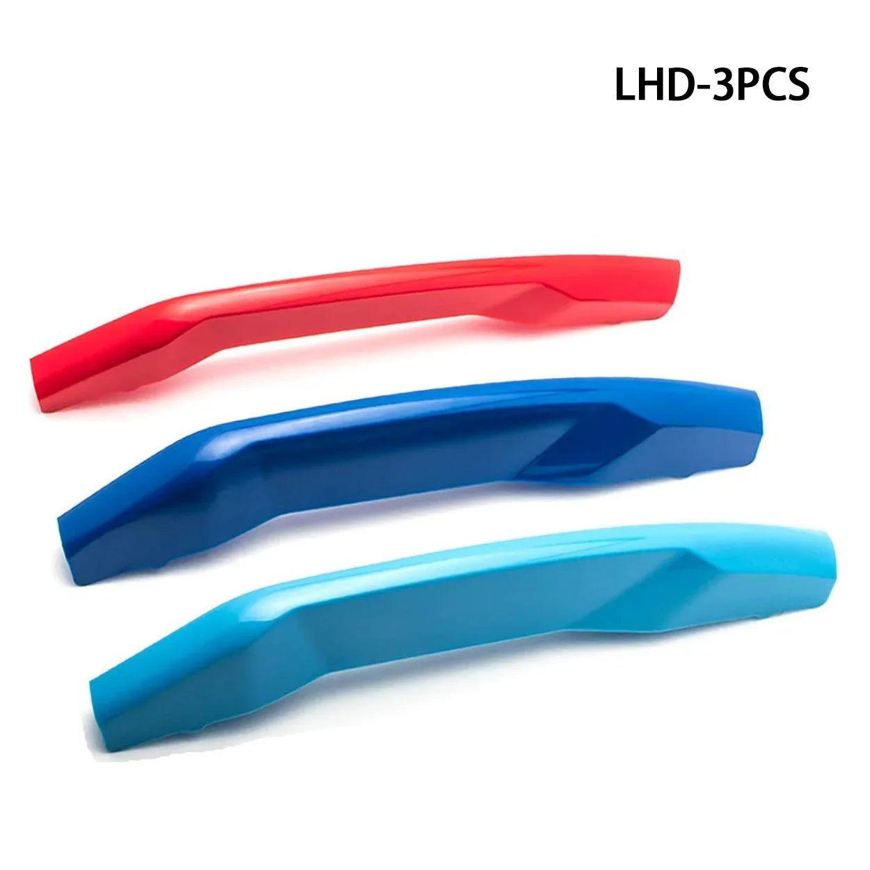 • Perfect Fit: Designed for the driver-side grille, these M-colored tri-grille insert trims feature a vibrant color sequence starting from the 2nd (red), 3rd (dark blue), and 4th (light blue) beams from the right side.