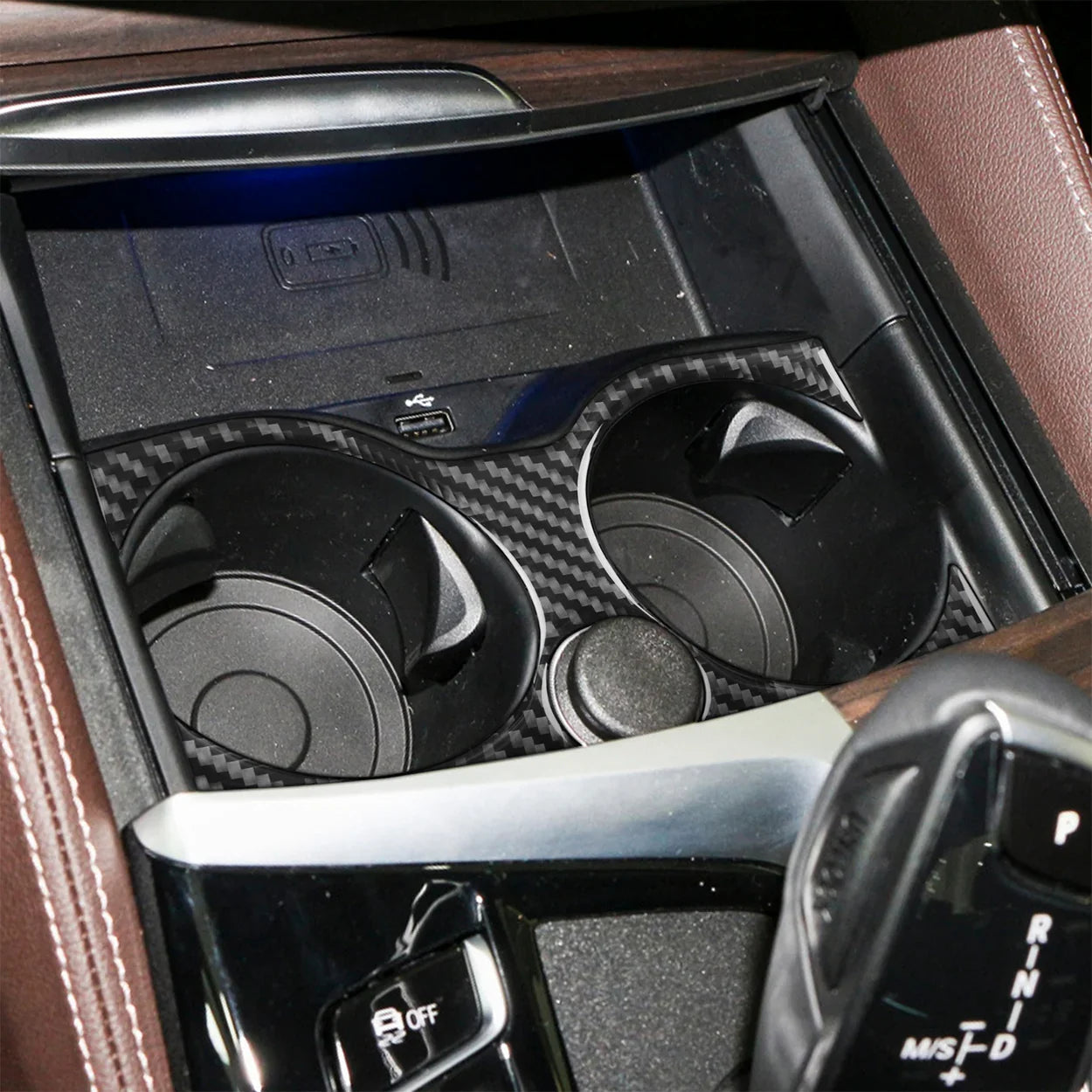 Enhance the interior of your BMW 5 Series G30, G31, G38 (2017-2023) with this elegant and stylish decoration decal for your center console cup holder. This trim adds a luxurious, unique, and distinctive touch, elevating your car's interior with a high-end look.