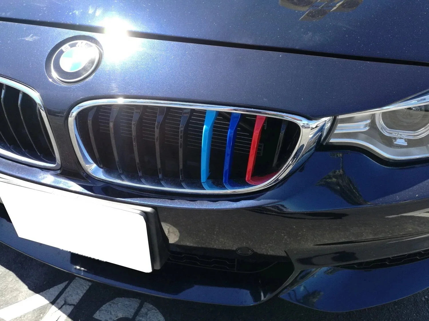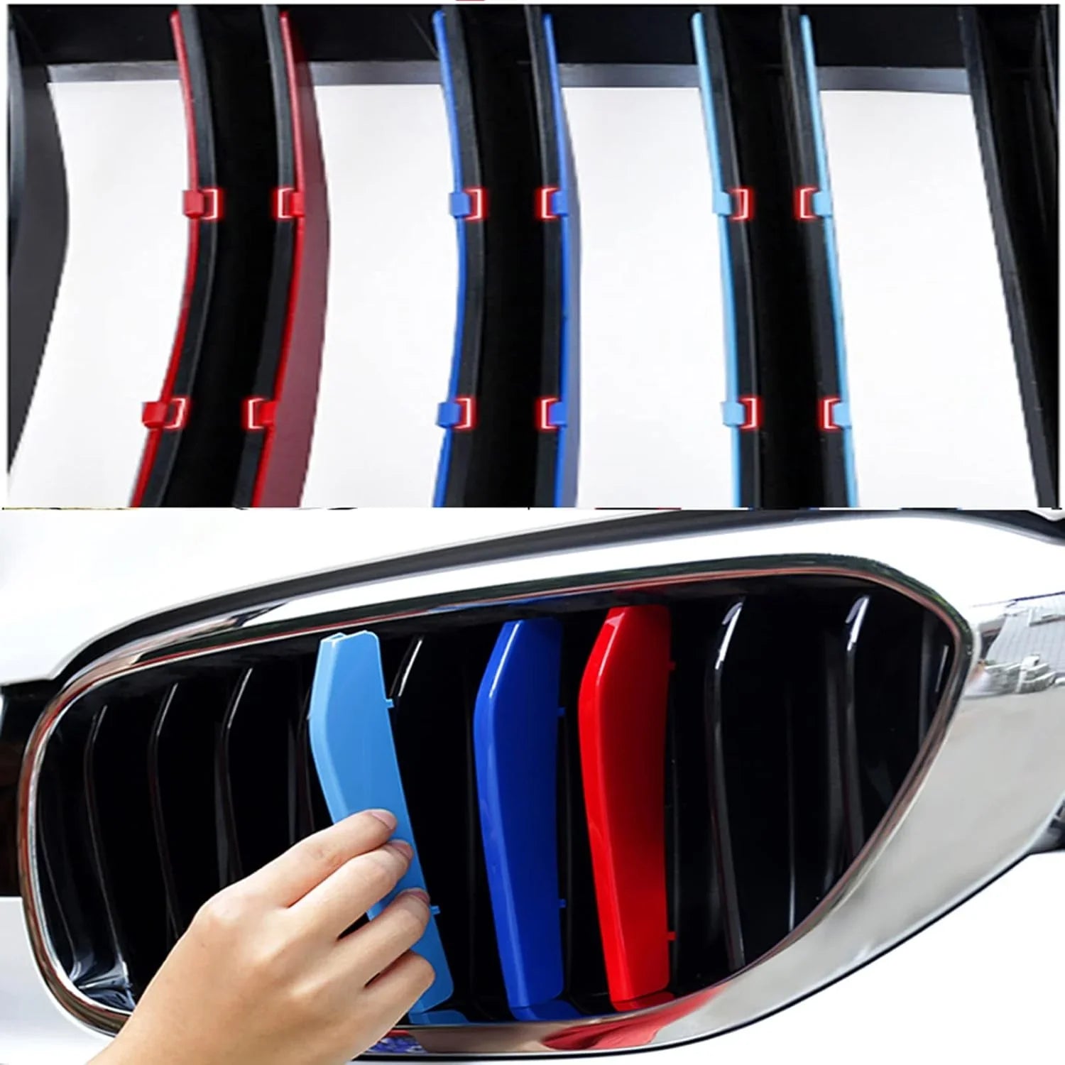 Inspired by the iconic BMW M stripes, these grille insert trims add a sporty and dynamic touch to your front grille. Instantly boost your car’s visual appeal with classic red, light blue, and dark blue tones.